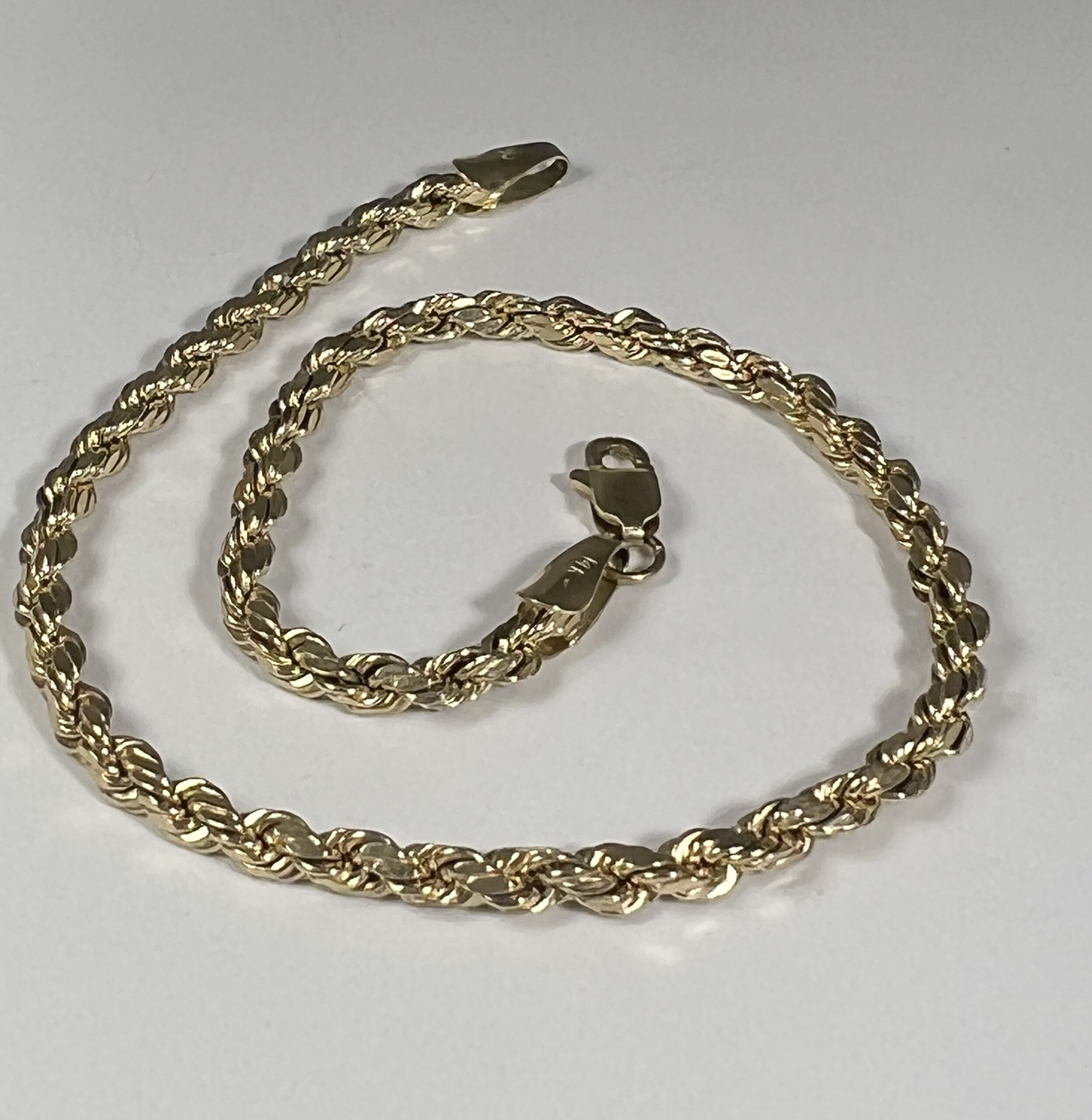 Bracelet à maille torsadée en or 14 carats. Longueur : 21 cm. Poids : 3 g.