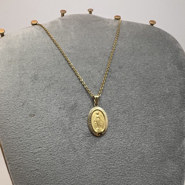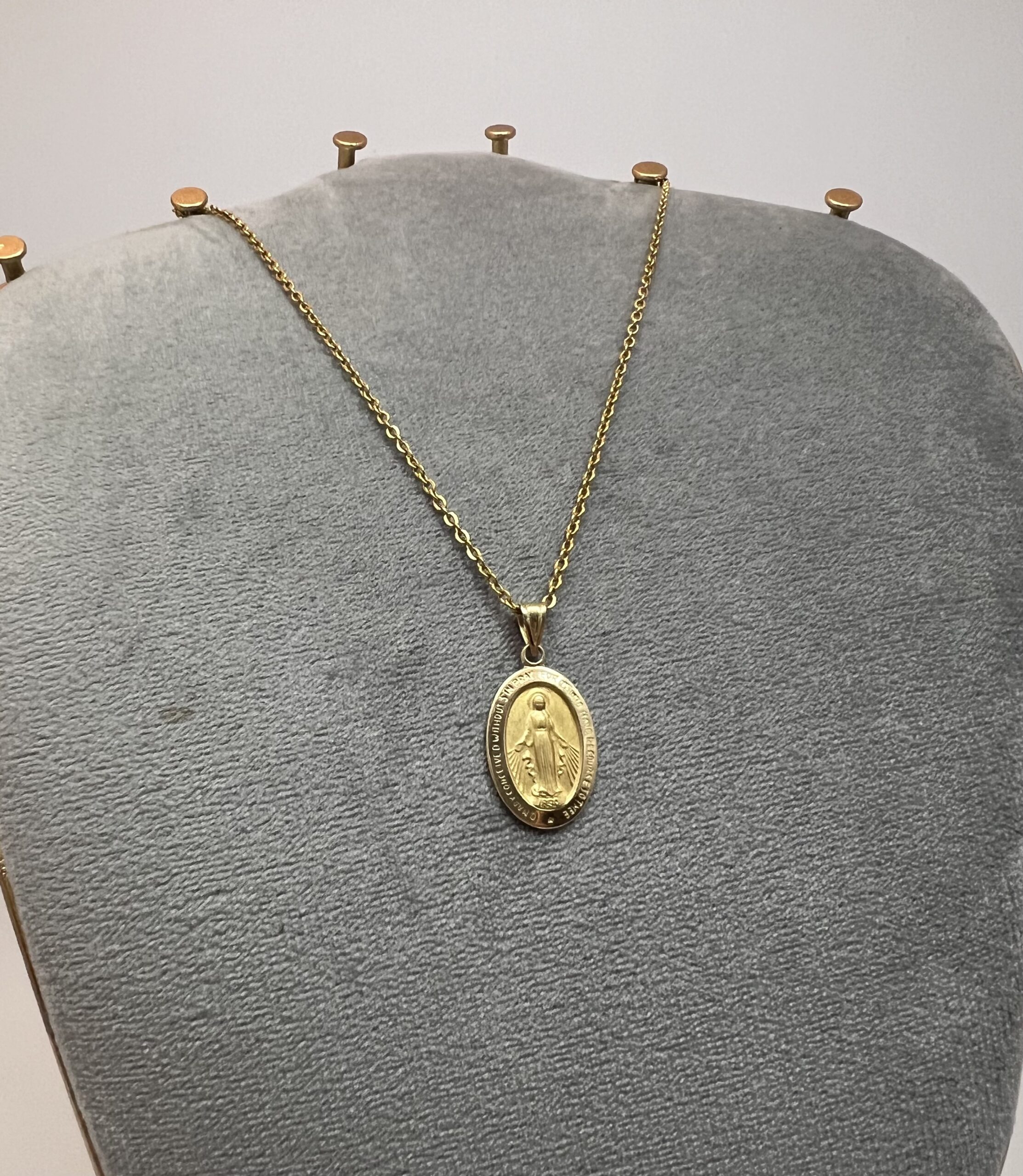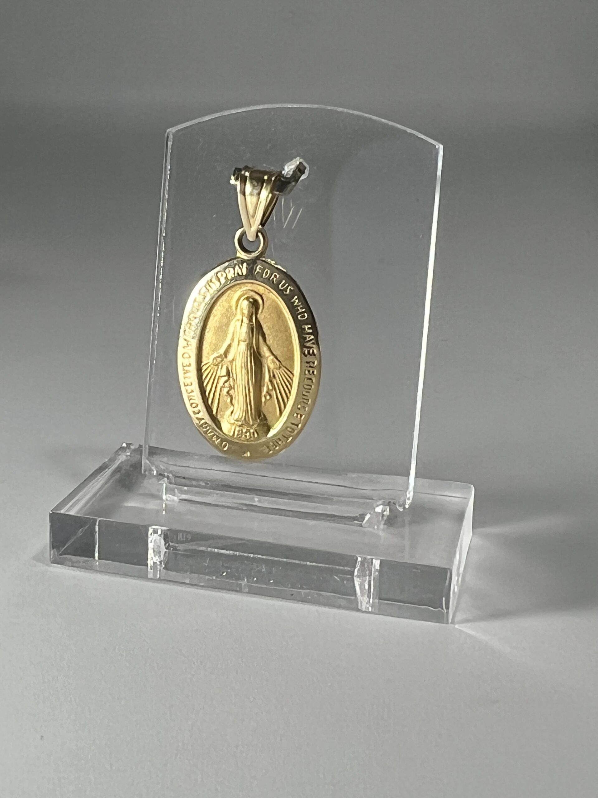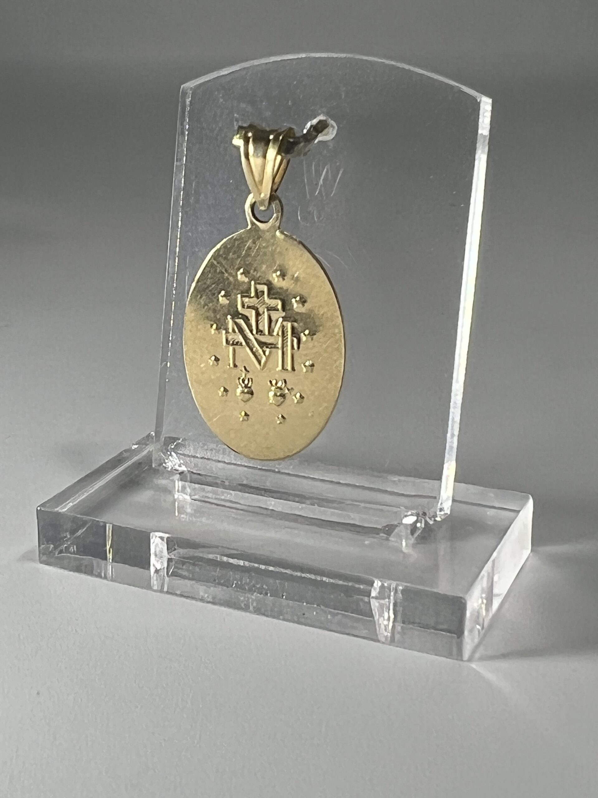 Médaille miraculeuse en or 14 carats. Dimensions sans la bélière : 22 x 18 mm. Légère car creuse. Poids : 0,9 g